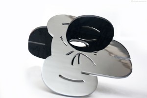 124 – Simio V – Acasala Simio – Aco cromado e aço bruto e verniz – 46x56cm – 2014 Liria Varne